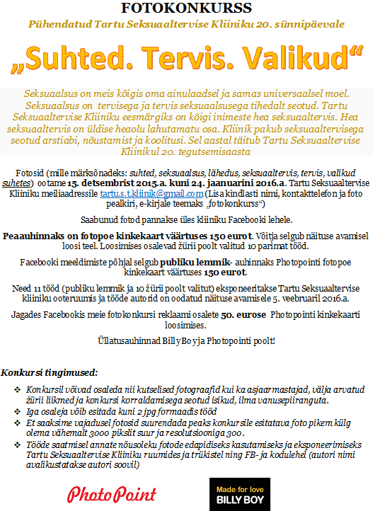Tartu Seksuaaltervise Kliinik ootab fotosid kuni 24.01.2016